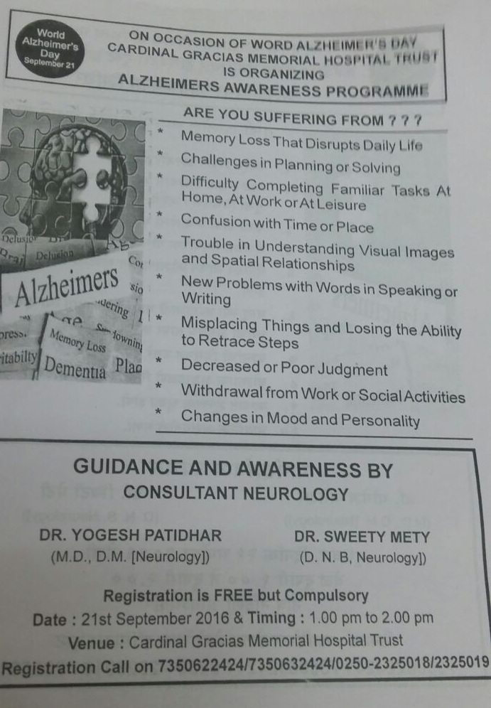 Alzheimer’s Awareness Programme organized by Cardinal Gracias Memorial Hospital Trust on 21.9.2016