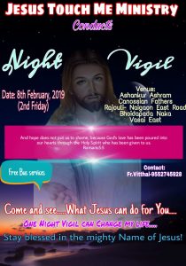 A Night Vigil will be organized by Jesus Touch Me Ministry on 8th February 2019, the Second Friday of ...