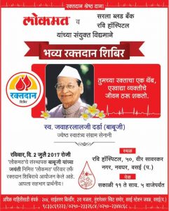 Blood Donation Camp with awesome benefits to donors, on Sunday, 2nd July 2017 at Vasai West Jun 30, 2017 By Admin A Blood Donation Drive is being organized by Lokmat in association with Sarla Blood Bank and Ravi Hospital on ...