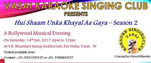 A Bollywood Musical Evening on 14 January 2017 at Vasai West