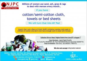 ‘Not Just a Piece of Cloth’ (NJPC) Collection Campaign by Goonj & JNS from 28 June to 1 August 2016 Jun 30, 2016 By Admin Let them also live and not just survive… Jagruk Nagrik Sanstha Vasai (JNS) brings Goonj's 'Not Just a Piece of Cloth' ...