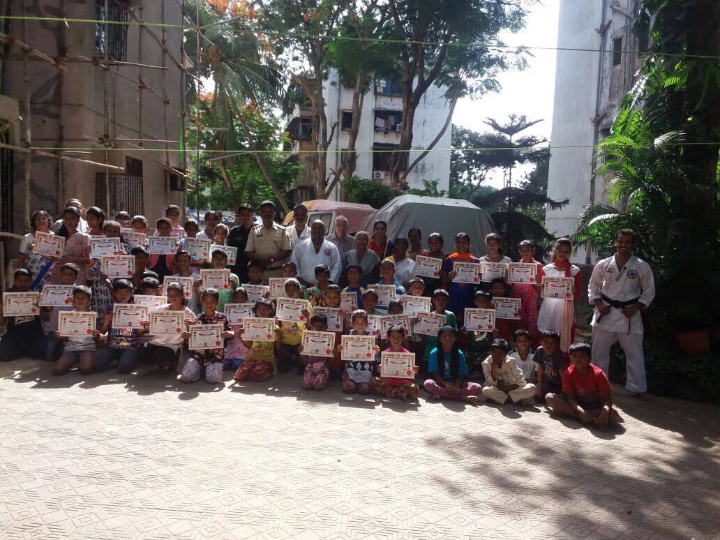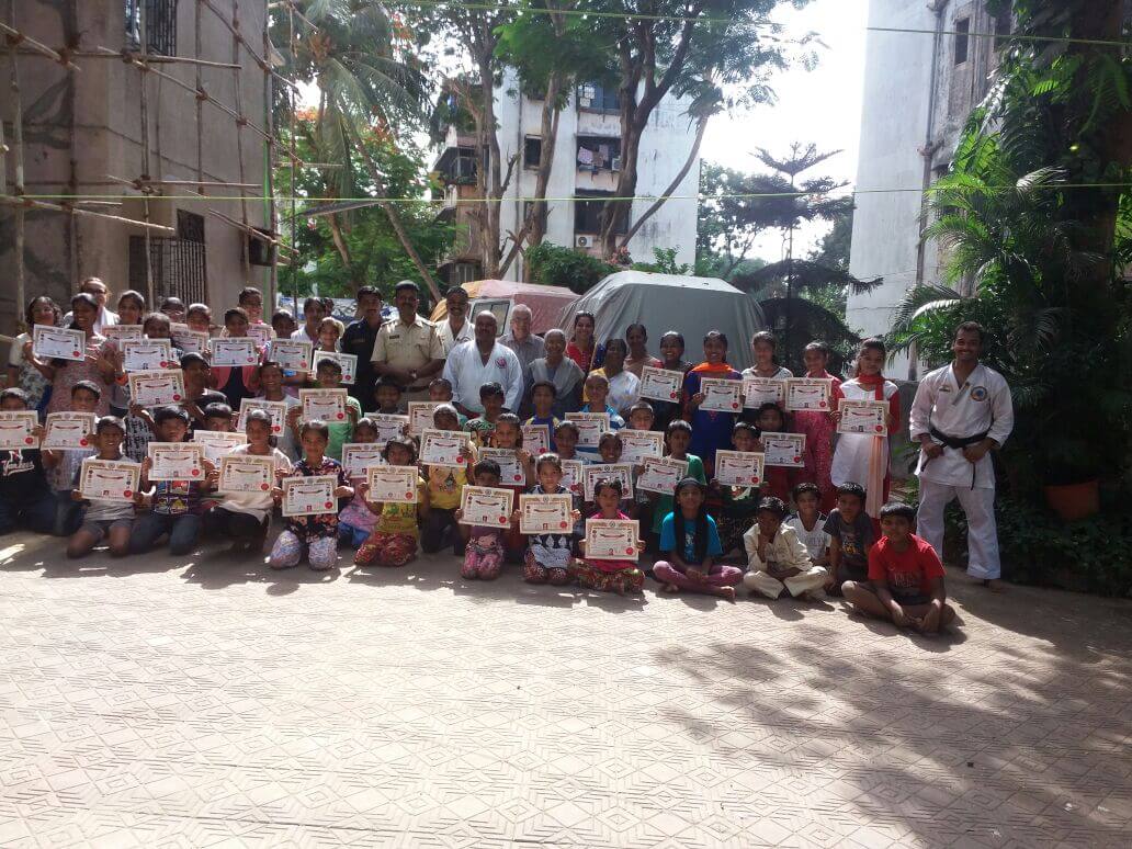 ‘Black Pantherkan Academy of Sports and Martial Arts’ Naigaon Team conducted a 2 months free karate basic training camp in Andheri (E).  50 poor Students from Ashadeep Ashram Andheri,  participated. Certificates were distributed to all students in the presence of Senior Commando Officer, GM. Pradeep Mohite, Sister Huberta Francis & Managing trustees.