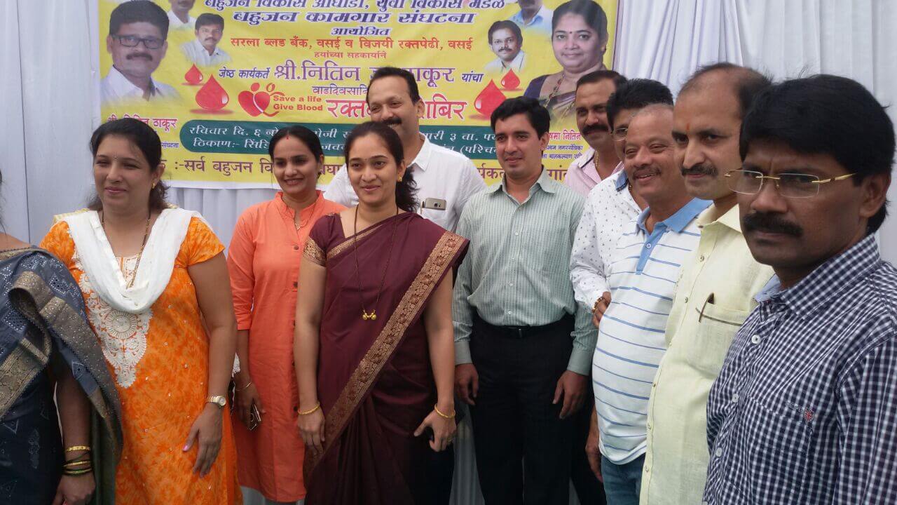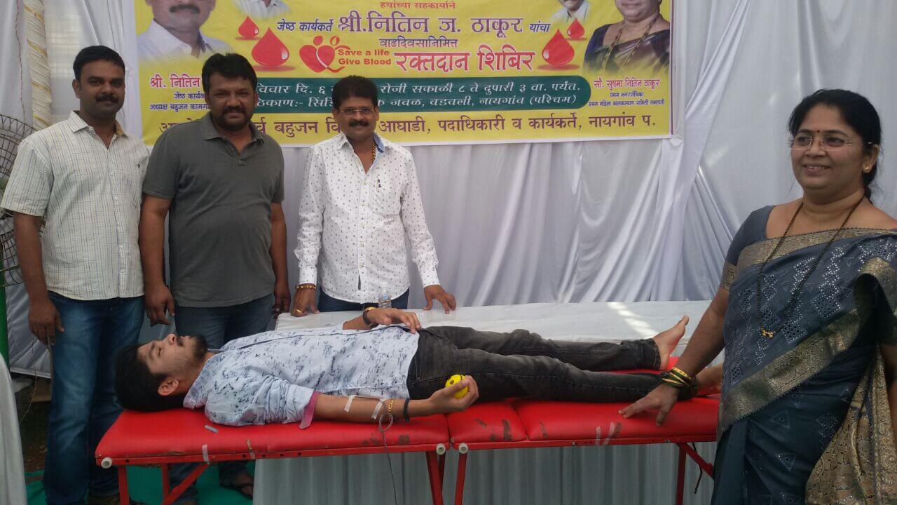 Bahujan Vikas Aaghadi in association with Sarala Blood Bank, Vasai, and Vijayee Blood Bank, Vasai, organized a Blood Donation Camp near Syndicate Bank, Vadavali, Naigaon West, on 6 November 2016. The camp was held on the occasion of Senior Leader, Nitin Thakur’s birthday. This is not the first time that Bahujan Vikas Aaghadi, leaving aside personal celebrations, has organized such a wonderful event that is open to all and of use to the needy. Hats off to all those who were involved in the Camp.