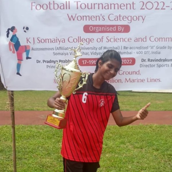Zita Gonsalves, resident of Naigaon West, winner of inter-collegiate football tournament held at Marine Lines on 19th October 2022.