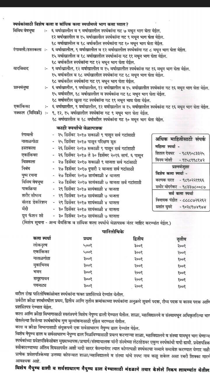 या id वर आपण मेल केल्यास आपणांस लगेचच सर्व कला – क्रीडा स्पर्धांच्या माहिती व फॉर्मच्या लिंक पाठवल्या जातील.