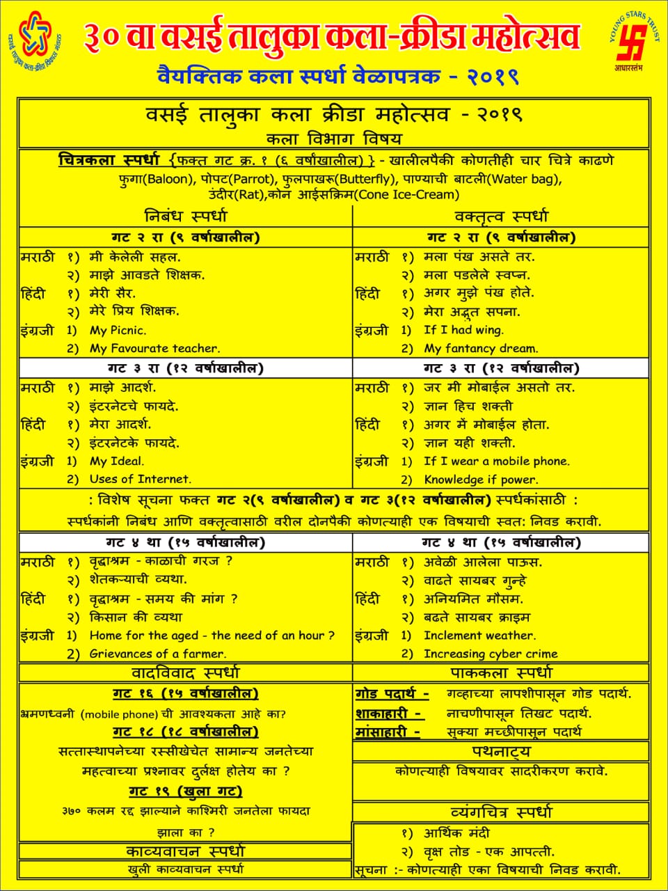 (ही स्पर्धा वसई तालुका मर्यादित राहील)